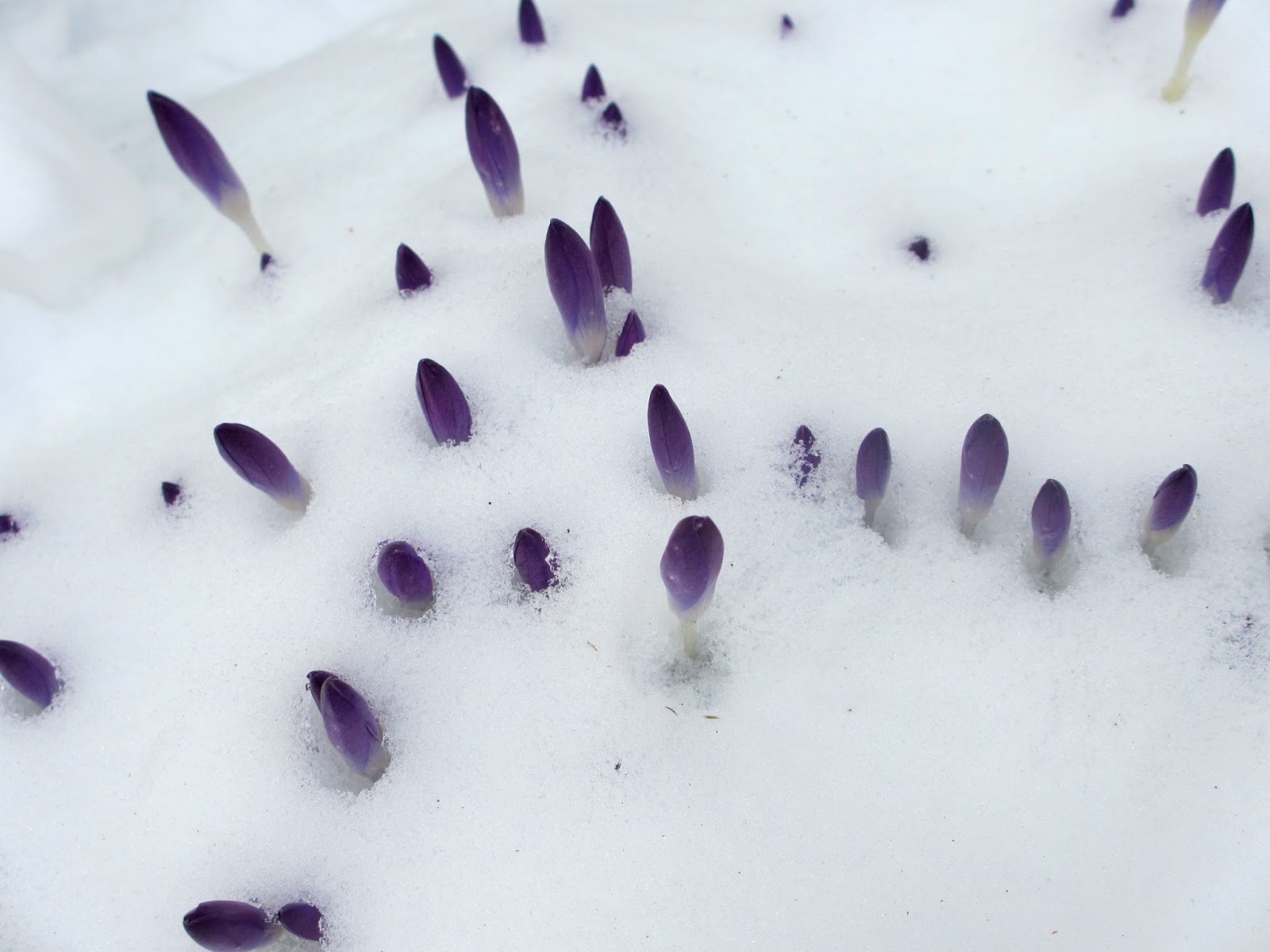 Nydelig bilde av krokus i snøen! Så fint å se de lilla toppene som stikker frem i snøen. Får håpe at du ikke får mer snø nå.